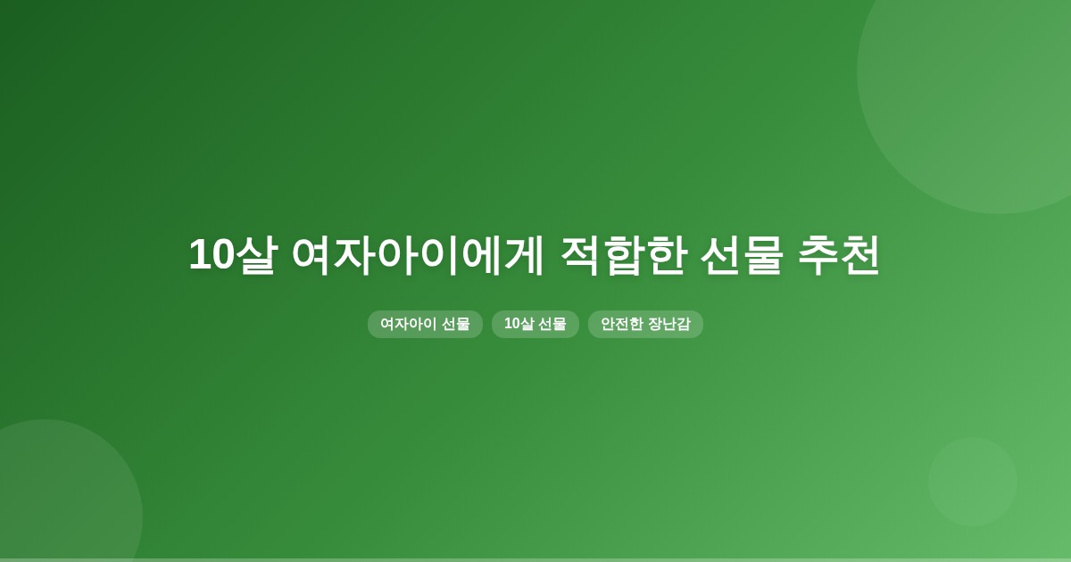 10살 여자아이에게 선물을 고를 때는 나이와 취향, 안전성을 고려하는 것이 중요합니다. 연령대에 맞는 사이즈와 내용, 좋아하는 캐릭터나 색감을 파악하여 선택하면 만족도를 높일 수 있습니다.