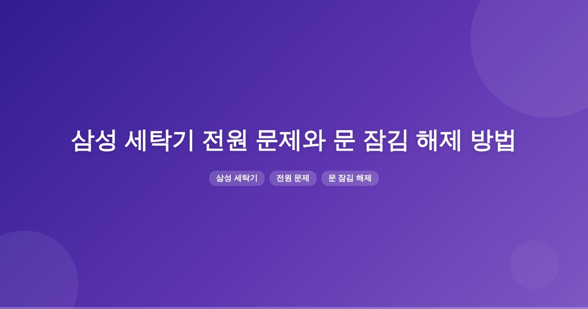 삼성 세탁기가 전원이 안 들어오고 문이 열리지 않는 경우, 전원 공급 문제와 내부 시스템 오류가 원인일 수 있습니다. 전원 초기화와 배수 작업을 통해 문제를 해결할 수 있습니다.
