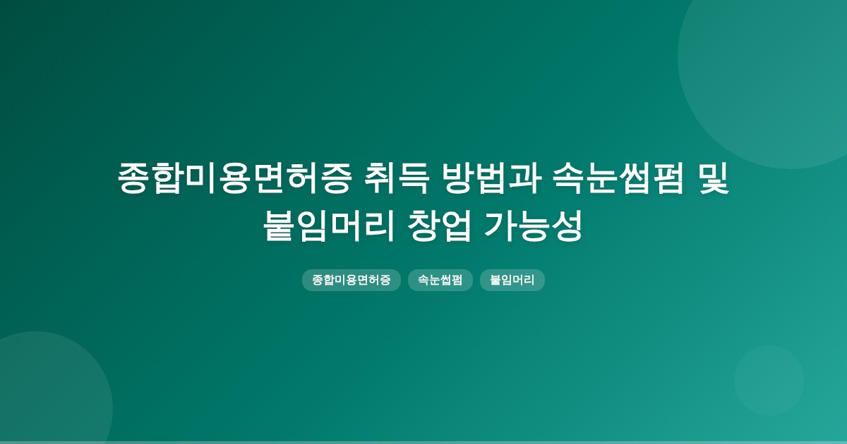 종합미용면허증은 온라인으로 취득할 수 있으며, 면허 취득 후 속눈썹펌과 붙임머리 창업이 가능합니다. 하지만 창업 시 사업자 등록과 위생 기준 준수 등 추가 준비가 필요합니다.